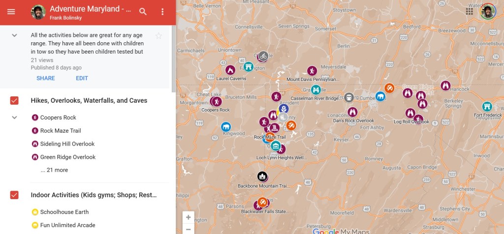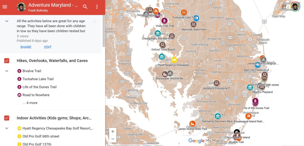 1. Click on the maps below to discover things to do in Maryland with kids or without. The maps will open in a new window for you to interact with them.